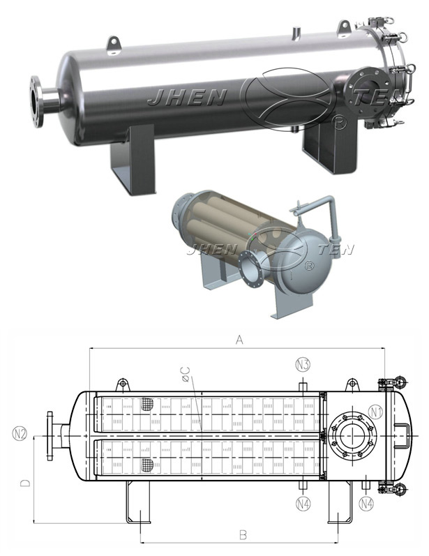JTGHF big flow liquid filter have two installation types like vertical and horizontal. 20', 40' filter filter usually adopt vertical structure, the flow of medium system more than 1000T/H. Choose horizontal structure and equipped with 60" filter cartridge, meet the large flow rate at the same time to reduce the the number of times of cartridge replacement. It is more convenient to replace filter.