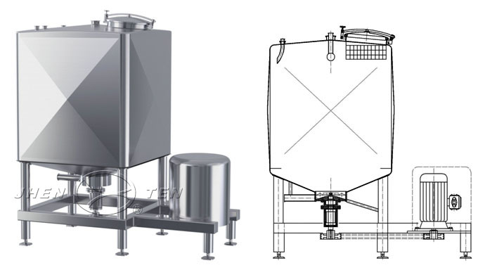 Square High Shear Emulsification Tank use square single layer stainless steel,and the inner wall of the tank body is made of circular transition, , no dead corner, easy to clean;and the bottom with mechanical emulsification.